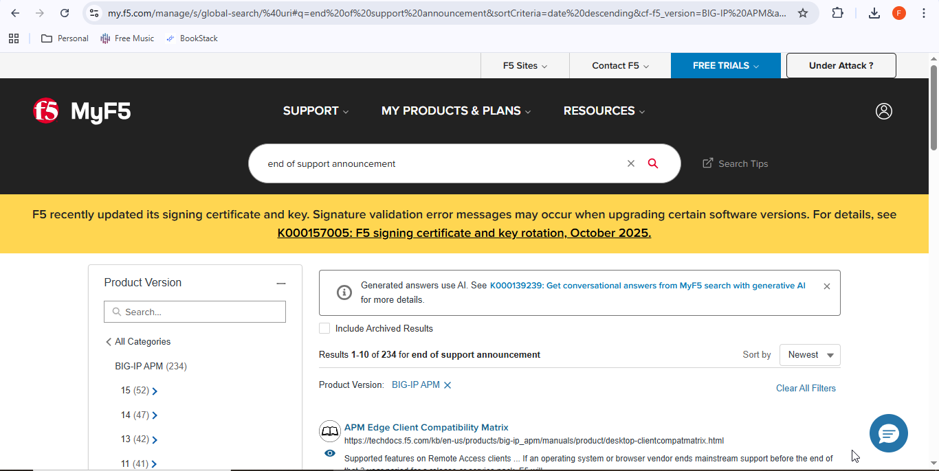 | 1 | Go to here: https://support.fortinet.com/support/#/lifecycle |